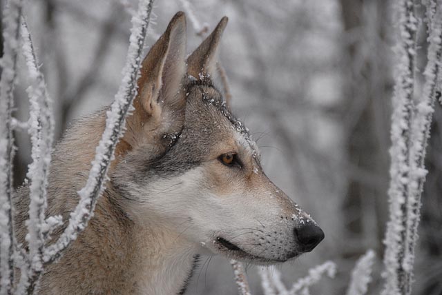 Der Winter läßt auf sich warten, kein Schnee in Sicht - dafür aber wunderschöner Rauhreif wohin das Auge blickt. Eine wundervolle Stimmung, obwohl es sehr neblig ist und hier die Sonne einfach nicht rausgucken will. Timish ist nun 8 Monate alt.
