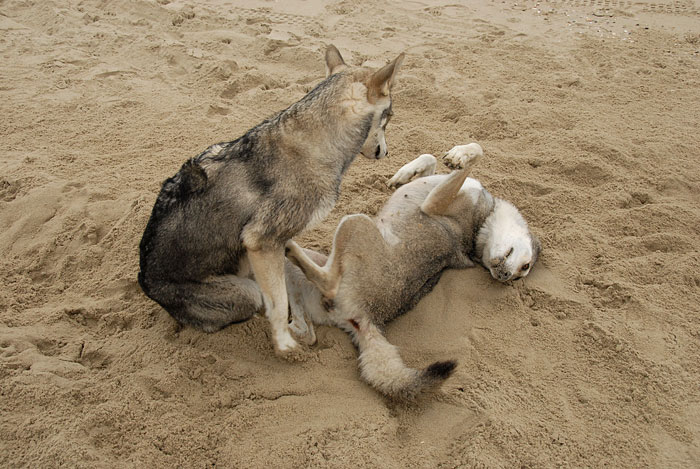 DSC_0008 Nisha fühlt sich sauwohl, während Timish sich über ihre Mama wundert...
