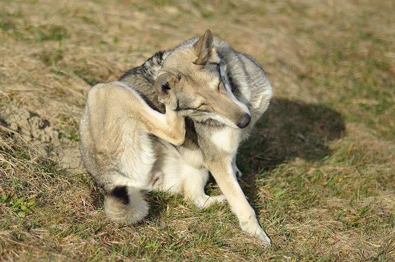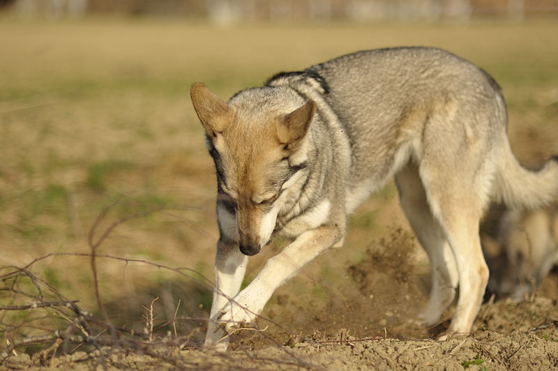 Shaya und ihre Mama Nisha toben miteinander - Yuma rennt einfach unten durch und hat wie fast immer ein Büschel Gras im Maul :) .
