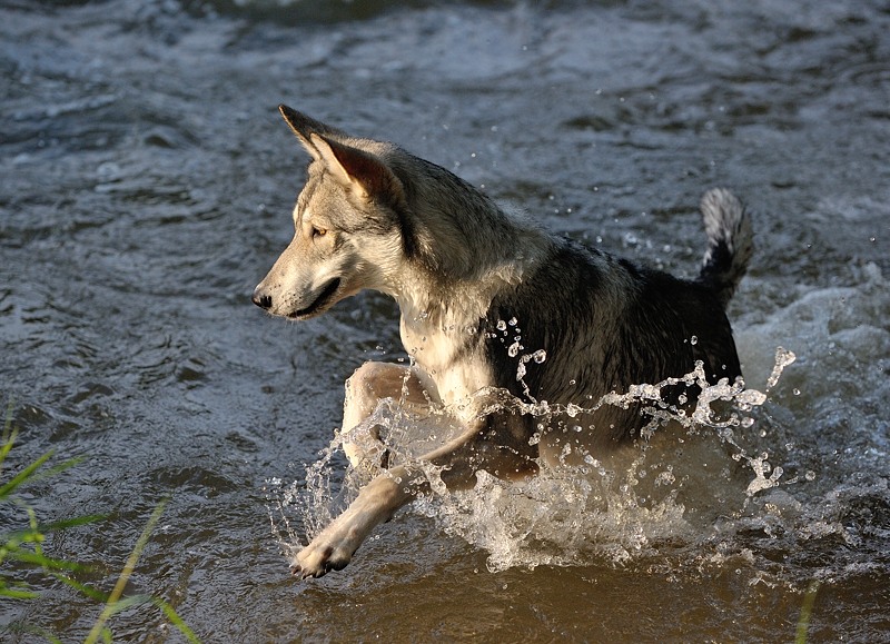 Ende Juli 2014 waren wir nochmal an der Donau, diesmal gab es ordentlich Hochwasser mit starker Strömung. Enya war 12 1/2 Wochen alt.