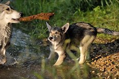 Ende Juli 2014 waren wir nochmal an der Donau, diesmal gab es ordentlich Hochwasser mit starker Strömung. Enya war 12 1/2 Wochen alt.