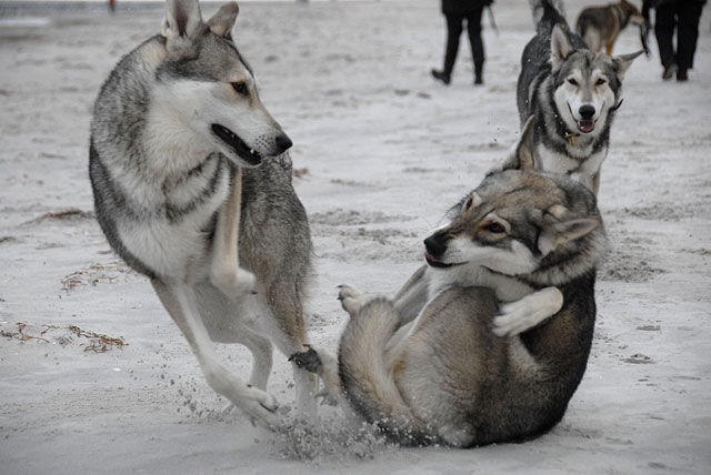 Nisha durfte mit dem kleinen Kerl eine Runde flirten, während die anderen brav an der Leine warten mußte. Denn so ein kleines Hündchen ist so einer…
