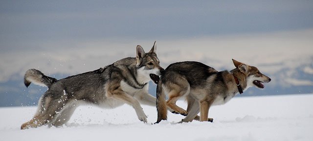 Die kleine SWH-Hündin Aska ist überraschend mit Herrchen und Frauchen zu Besuch gekommen. Da es wieder Neuschnee gab, konnten die Hunde schön im Schnee toben und hatten viel Spaß miteinander :) .