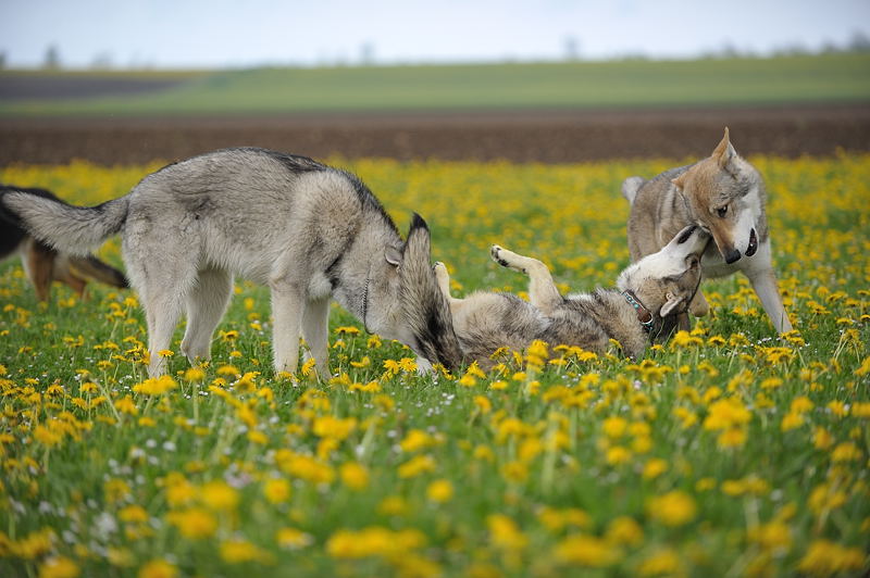 Am 1. Mai haben wir Nisha's Sohn und Shaya's Bruder Bowie und natürlich Herrchen Ingo und Ares und Dusty getroffen. Wir haben einen schönen Spaziergang gemacht. Leider war das Wetter bescheiden, auf der Hin- und Rückfahrt hat es geregnet wie aus Eimern, aber wir hatten doch etwas Glück und es war zumindest trocken während unseres Spaziergangs. Das Licht zum fotografieren war daher ziemlich schlecht wegen der starken Bewölkung, aber ich habe versucht, das beste daraus zu machen ;) . Nisha und Timish mußten wegen Läufigkeit leider zu Hause bleiben, so nahmen wir nur Shaya und Yuma mit.