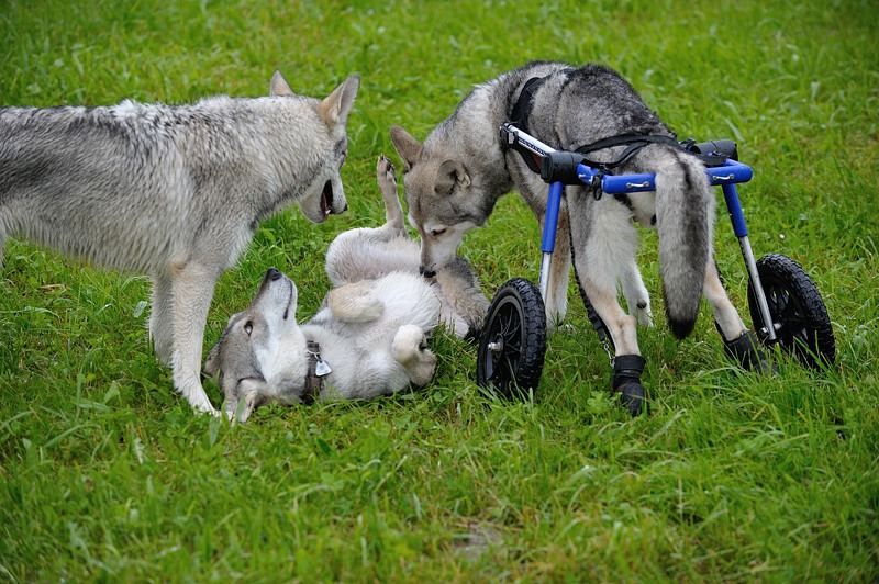 Anfang Juni bekamen wir Besuch von Timish's Söhnen Cheveyo und Kenai (unser C-Wurf, 1 1/2 Jahre alt) sowie von der hübschen SWH-Hündin Nimueh. Es war grad die Zeit des Hochwassers, sprich es gab praktisch Dauerregen und es war von oben und unten naß! Den Hunden hat das aber nix ausgemacht und ich war mutig und habe meine Kamera trotz Regen mitgenommen...(dies ist Teil 1 von 3)