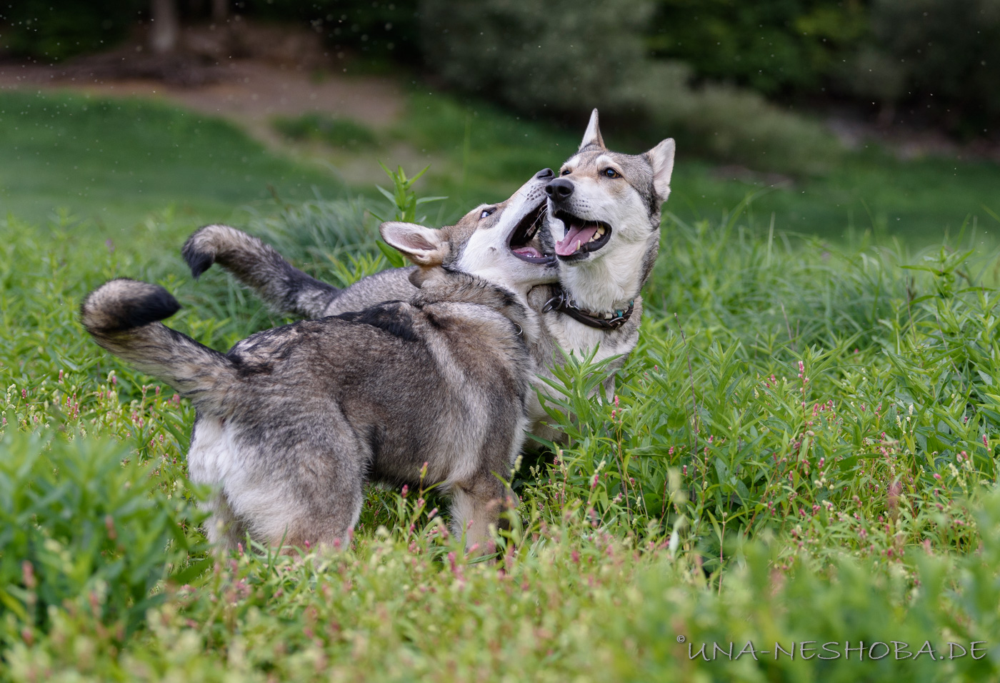 Am Wochenende vom 6.-8. September 2019 fand das jährliche Saarlooswolfhond Treffen vom SWH-Club statt. Das Treffen war im Ferienzentrum Albert Schweitzer am Edersee und dort haben wir unser Einzelkind Yuma wieder gesehen, inzwischen 18 Wochen alt (siehe auch F-Wurf). Es war eine große Freude auf beiden Seiten, denn auch Yuma war außer sich vor Freude, uns und seine Mama Enya sowie Oma Shaya, Großtante Timish und Tante Yasha zu sehen :). Er hat sich toll entwickelt, ist nach wie vor sehr offen und hat vor nichts Angst. Und ich finde, daß er auch wunderschön ist - aber überzeuge Dich selbst!