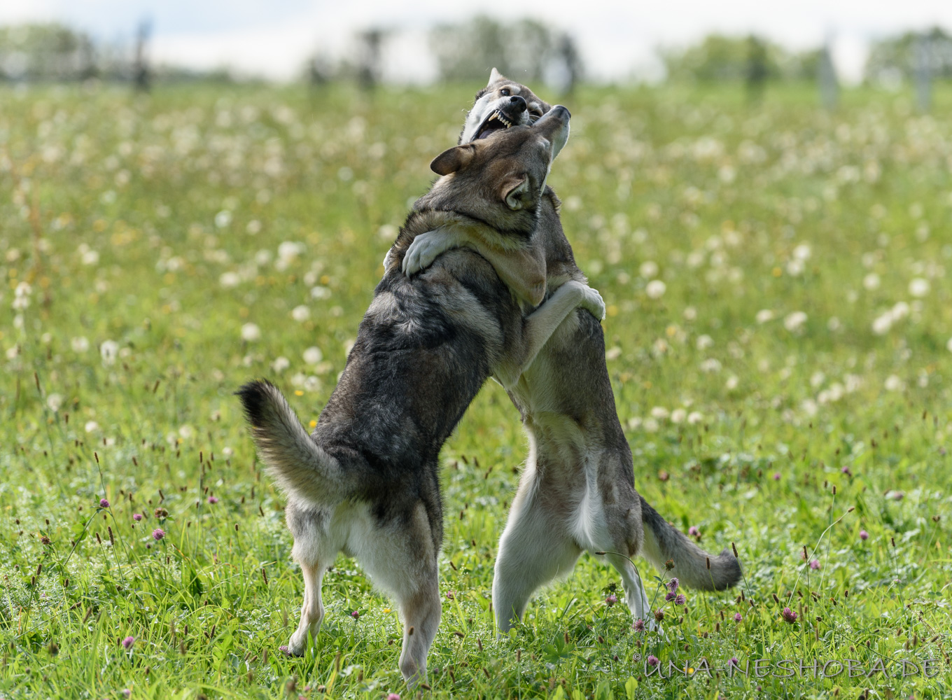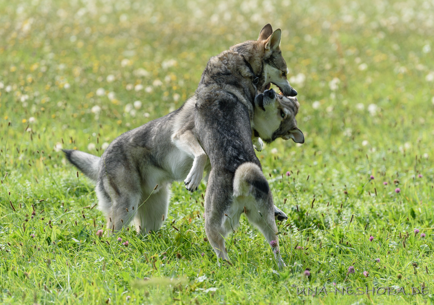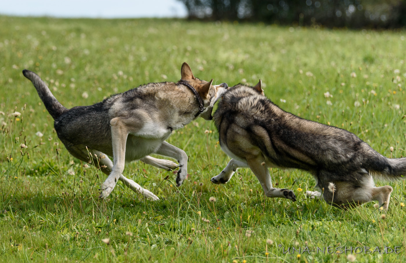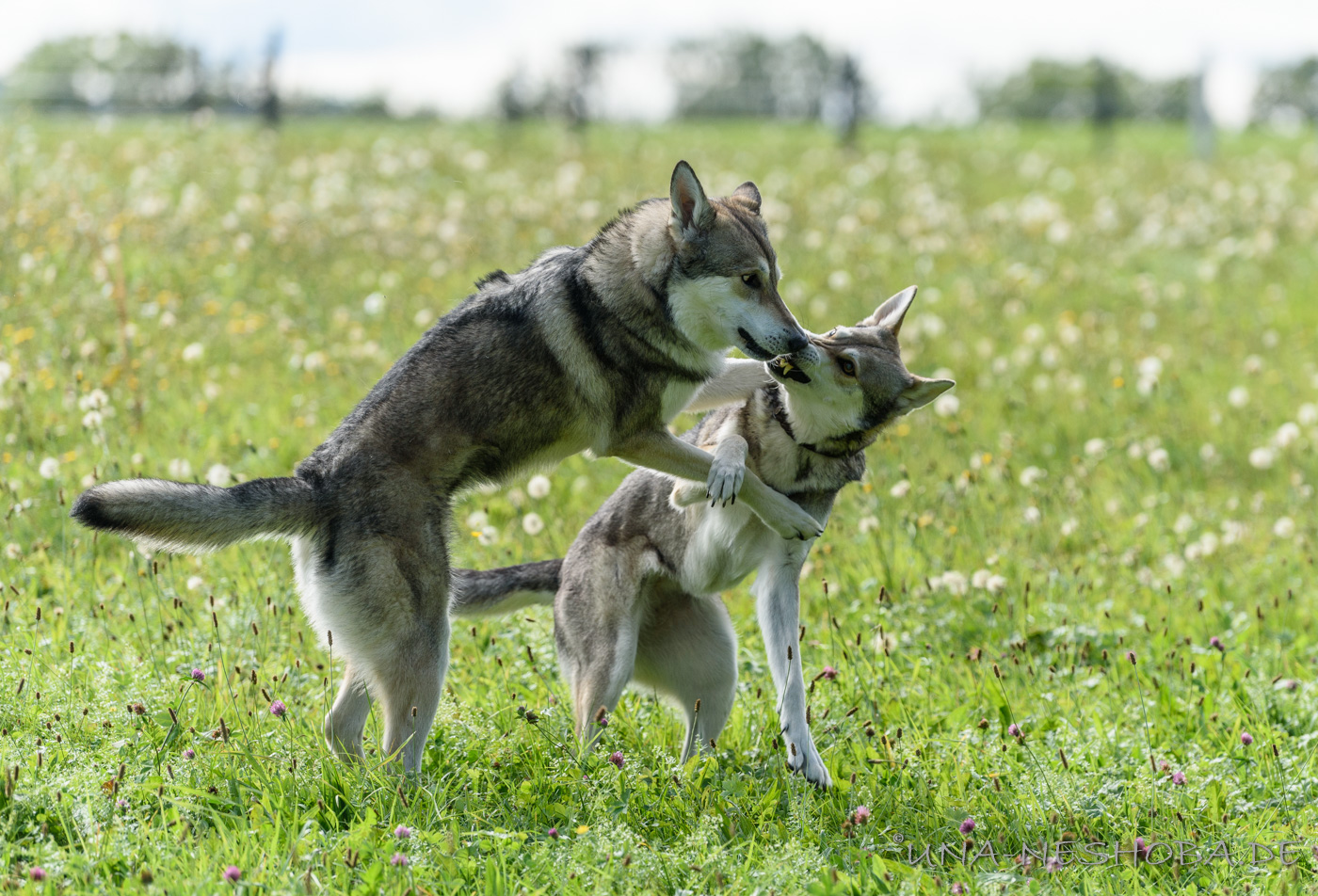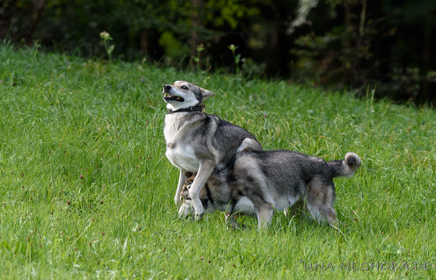 Vom 25. bis 27. September 2020 hatten wir Besuch von Enya's Sohn Yuma aus unserem F-Wurf (Faolan Yuma Una Neshoba, 18 Monate alt). Yuma ist einfach nur ein Sonnenschein, sein dauerndes Grinsen im Gesicht spiegelt seinen Charakter wider :). Die Weiber hatten ordentlich zu tun mit ihm, aber er hat sich nicht unterkriegen lassen.