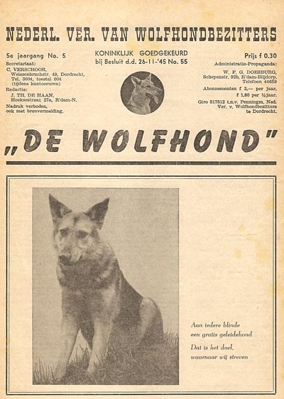 Clubzeitschrift im Jahr 1945 des Vereins "Nederlandse Vereniging voor Wolfhondbezitters en de Blindengeleideschool voor Wolfhonden"