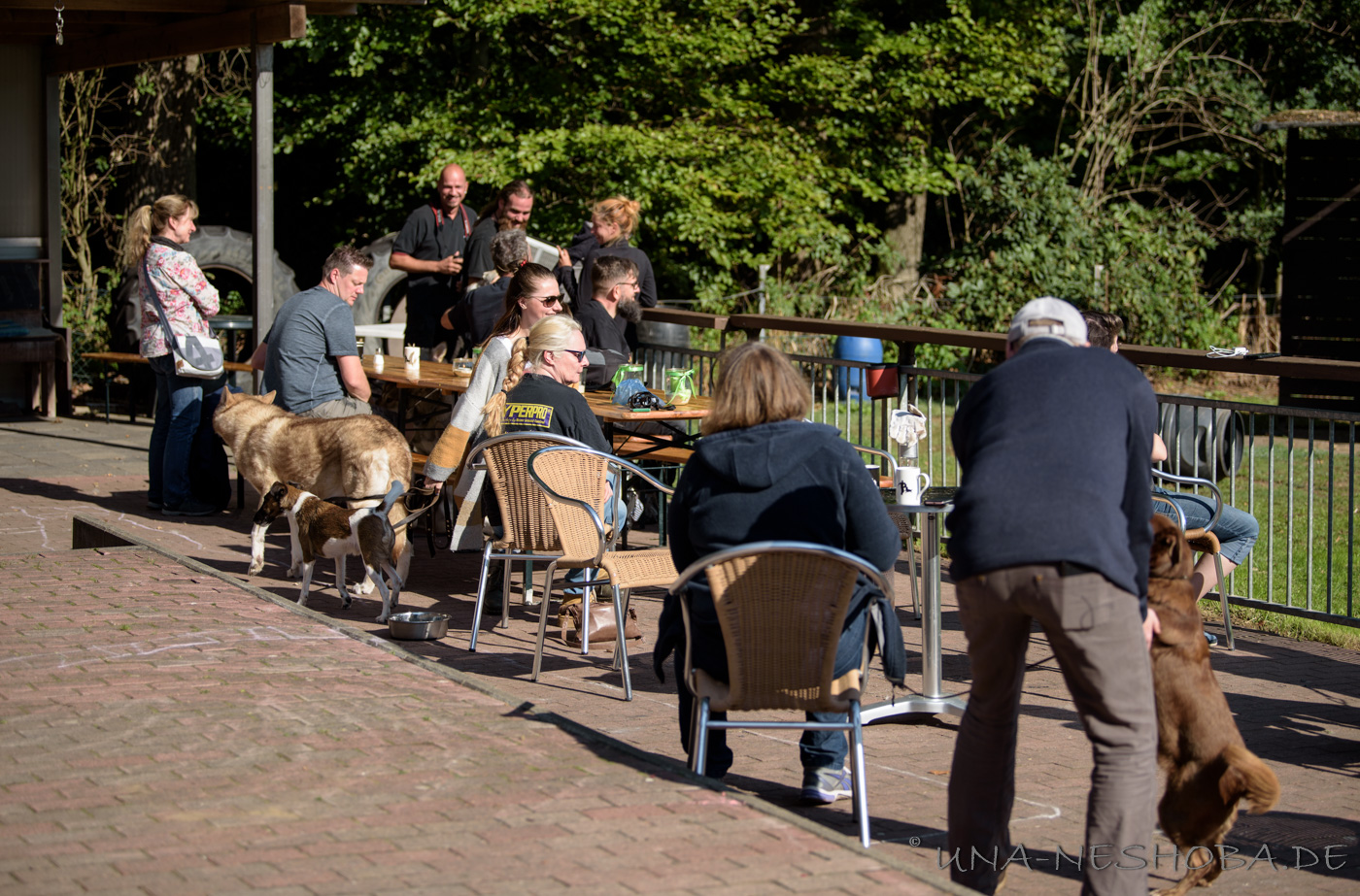 Die Zeit zwischendurch wurde genutzt zum tratschen, chillen und den Hunden zuzuschauen, die auf dem eingezäunten Gelände toben durften.