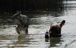 Shaya und Nocona sind 10 Wochen alt. Am letzten gemeinsamen Tag sind wir zu einem Baggersee gefahren, wo die Hundis viel Spaß hatten :) .