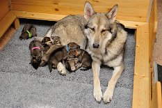 Shaya x Django: Am 28. April 2014 wurden 7 Welpen geboren, alle wolfsgrau, 5 Hündinnen und 2 Rüden.