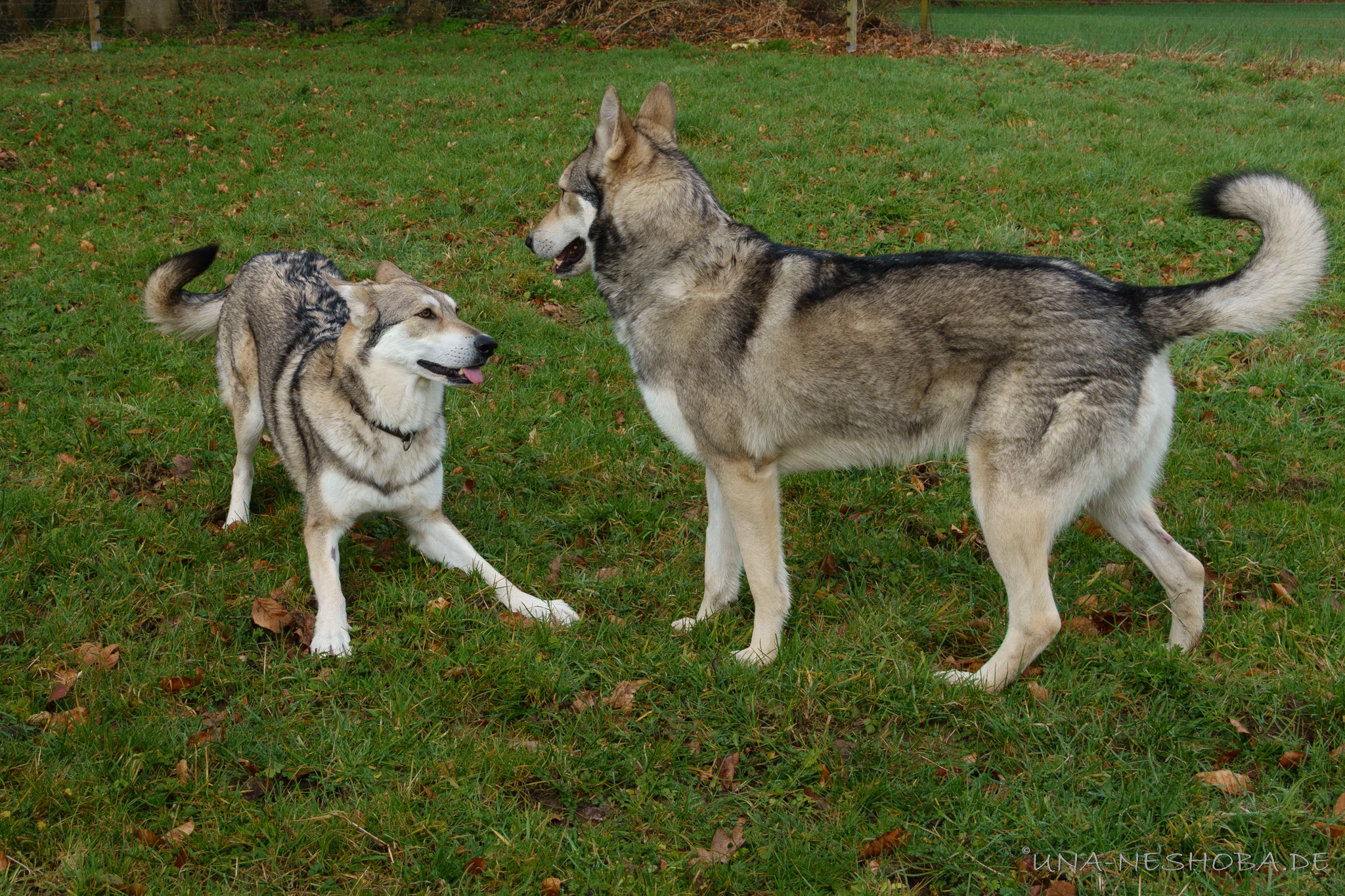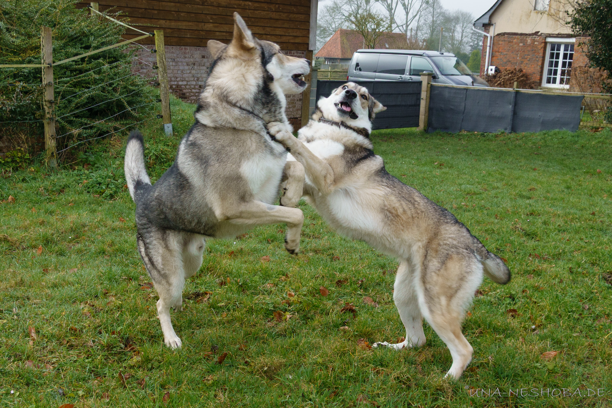In der letzten Februarwoche 2025 waren wir in der Normandie um Shima und Ryuk zu verpaaren für unsere geplanten H-Wurf. Das erste Foto in dem Album ist am ersten Tag entstanden, da hat es schon gefunkt zwischen den Beiden. Die restlichen Photos sind am letzten Tag am 1. März 2025 entstanden, als wir vor der Heimfahrt nochmal bei Ryuk vorbeigeschaut haben - auch an dem Tag gab es nochmal einen Deckakt (sowie an den Tagen dazwischen). Shima war sehr verliebt in Ryuk, was die Bilder denke ich deutlich zeigen. Wir haben die Reise alleine mit Shima gemacht, während ein sehr guter Freund bei uns zu Hause auf Yasha, Enya und Neytiri aufgepasst hat.
